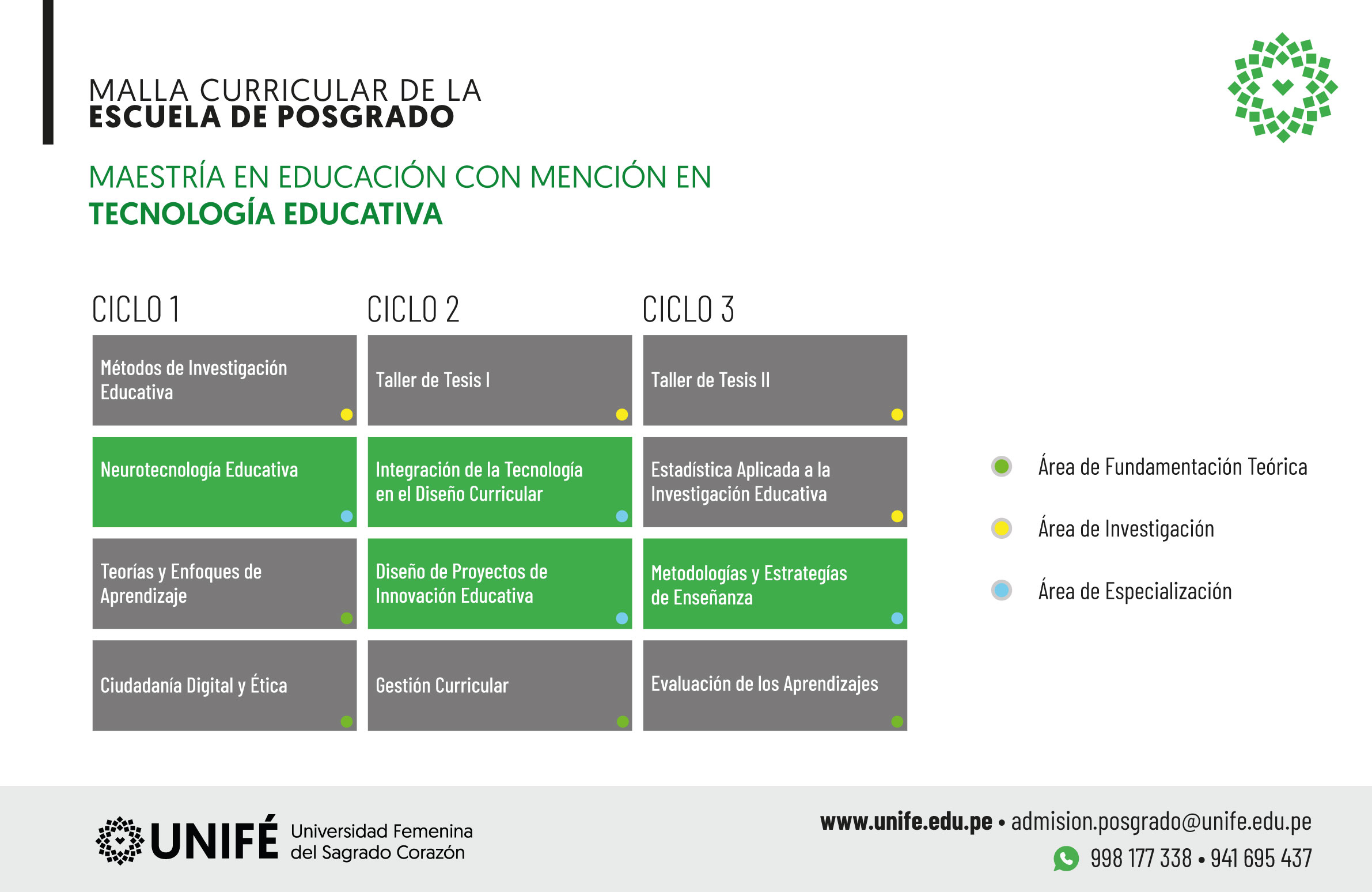 Tres semestres académicos: Un año y medio • Horario Presencial y Semipresencial: martes de 5:00 p.m. a 10:00 p.m. y sábado de 8:00 a.m. a 01:00 p.m. • Horario Semipresencial: sábado de 8:00 a.m. a 6:40 p.m.