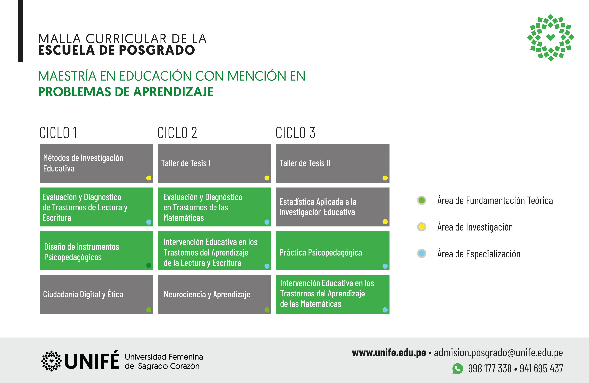 Potenciamos tu profesión preparándote para gestionar propuestas educativas que respondan a las múltiples situaciones que, con frecuencia se presentan en aula, entre ellas, las alteraciones que surgen en la infancia, adolescencia o la adultez, que afectan o retrasan el aprendizaje. Algunos de los tópicos de interés están relacionados al conocimiento del cerebro y cómo éste aprende, así como los mecanismos para prevenir y atender oportunamente las dificultades que pudiesen presentarse, fundamentalmente en el aprendizaje de la lectura, escritura y cálculo.
